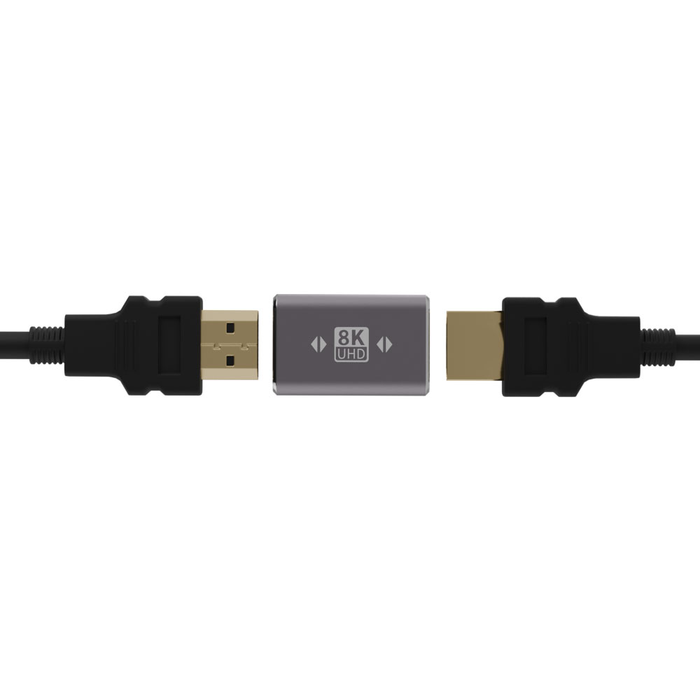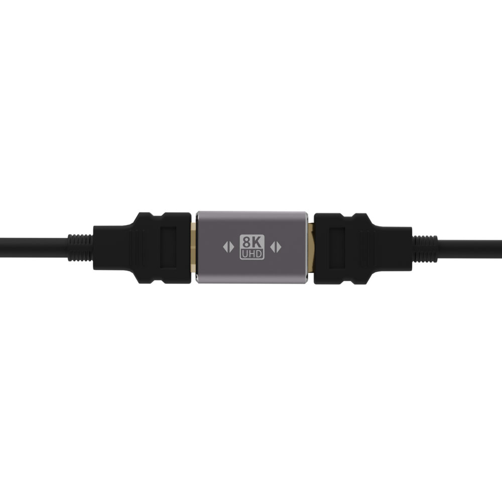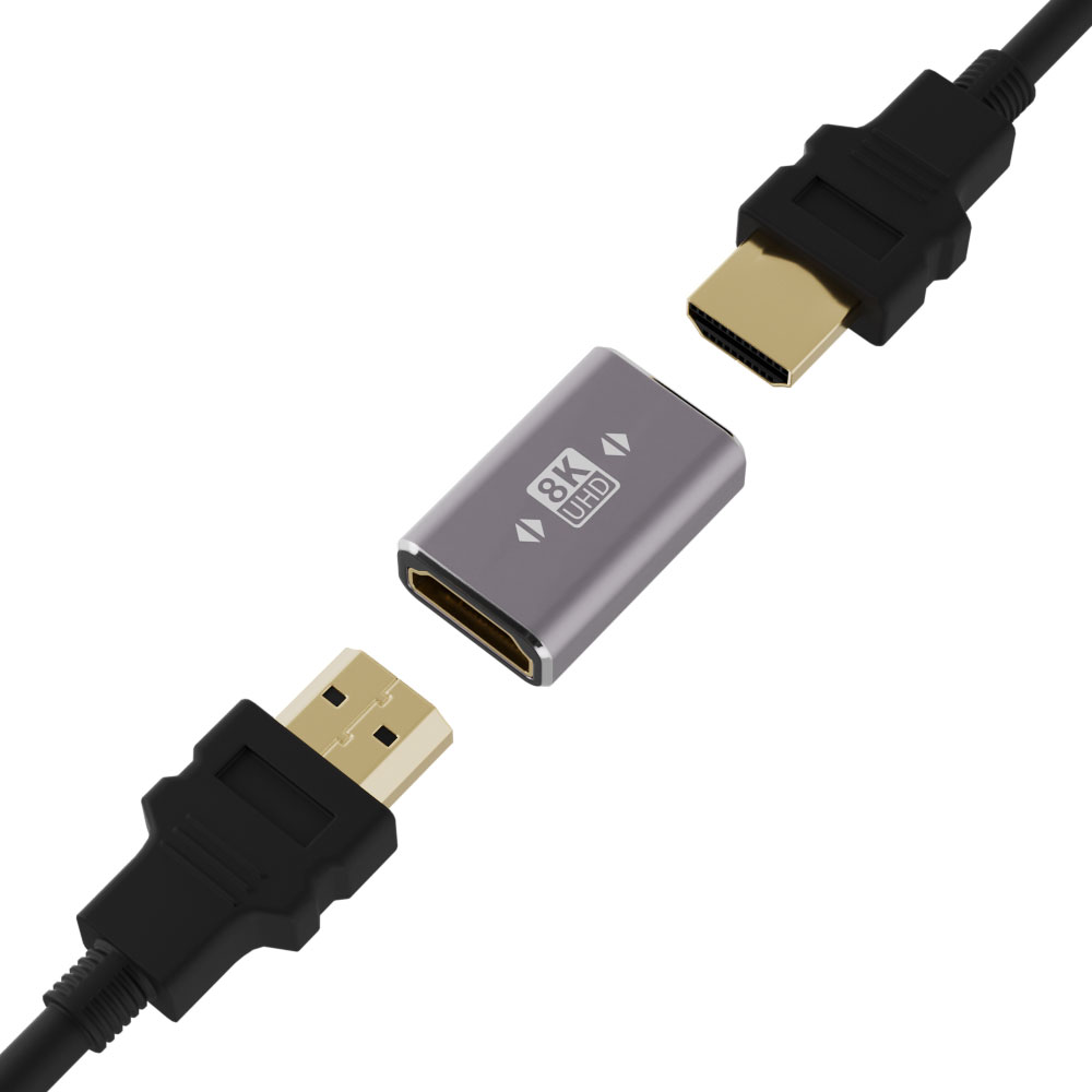 HDMI 2.1規格に対応し、8K60fps・4K120fpsの超高解像度映像伝送を実現するHDMI中継アダプタ。 2本のHDMIケーブルをつなげることで、 より遠い場所でもテレビやモニターへの映像出力を可能にします。 本体は金属ボディーで放熱性・耐久性に優れ、各種映像を性格に表示できます。