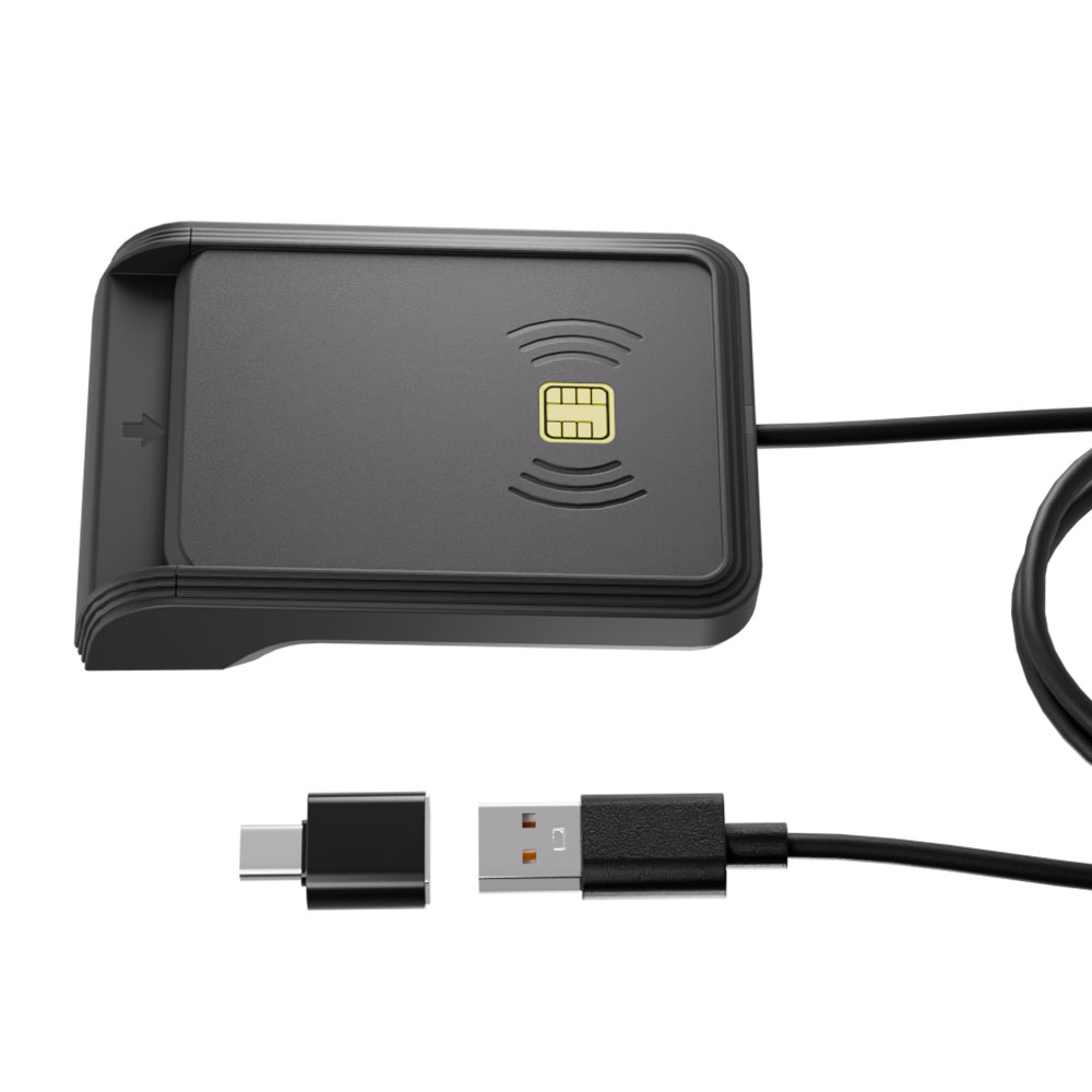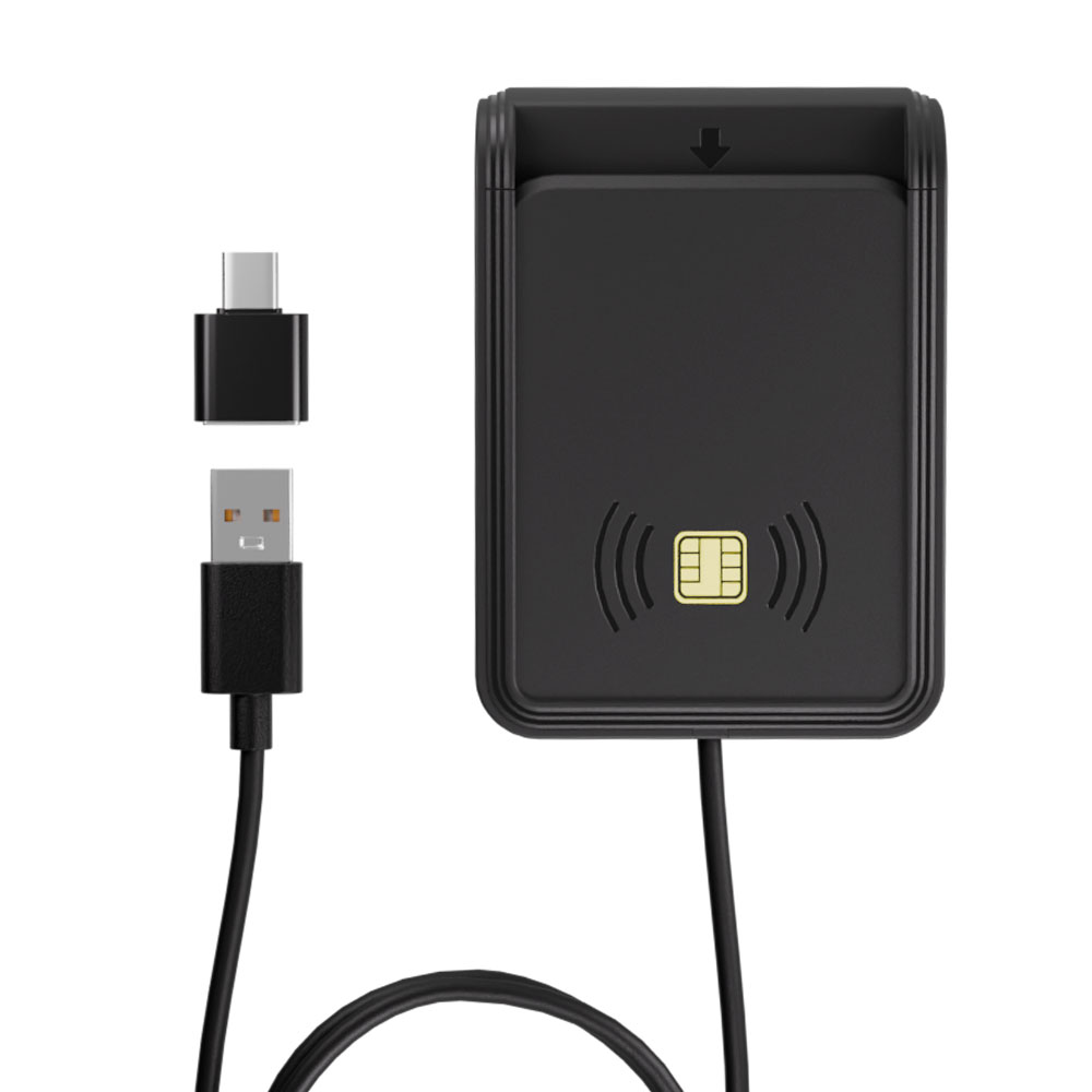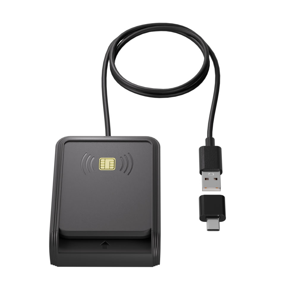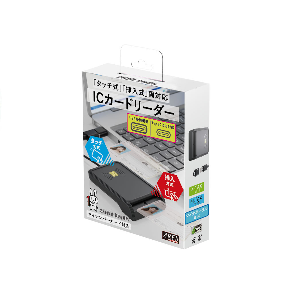 タッチ式でも挿入式でも認識できるデュアル方式のICカードリーダー。マイナンバーカード、e-TAX、eLTAX、マイナポータルに対応し、行政手続きや確定申告に最適。パソコンとはUSB接続とTypeC接続の両方に対応しています。