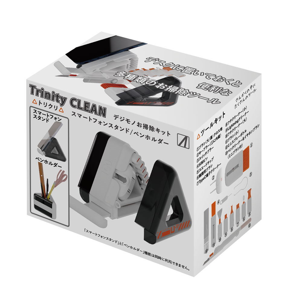 パソコン、キーボード、スマートフォン、イヤホンなど、デジタルデバイスの掃除に特化した13種類の専門ツールを1つにまとめました。三角形のスタイリッシュなデザインで、スマートフォンスタンドやペンホルダーとしても活躍。わずかなデスクスペースに収まり、必要な時にすぐ使える便利なツールキットです。(ペンホルダー・スマートフォンスタンドの機能は同時にはご利用いただけません)
