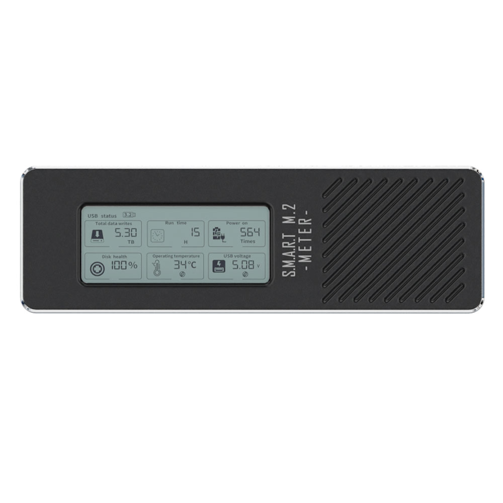 接続中のSSDのS.M.A.R.T情報をリアルタイムに表示する機能を搭載。ディスクヘルス、動作温度、USB電圧、稼働時間、総書き込みデータ量など、SSDの健康状態に関する重要な情報をいつでも確認できます。温度や寿命の状態がひと目でわかるため、データ損失リスクを未然に防ぎ、最適なタイミングでのバックアップやSSD交換の判断が可能になります。