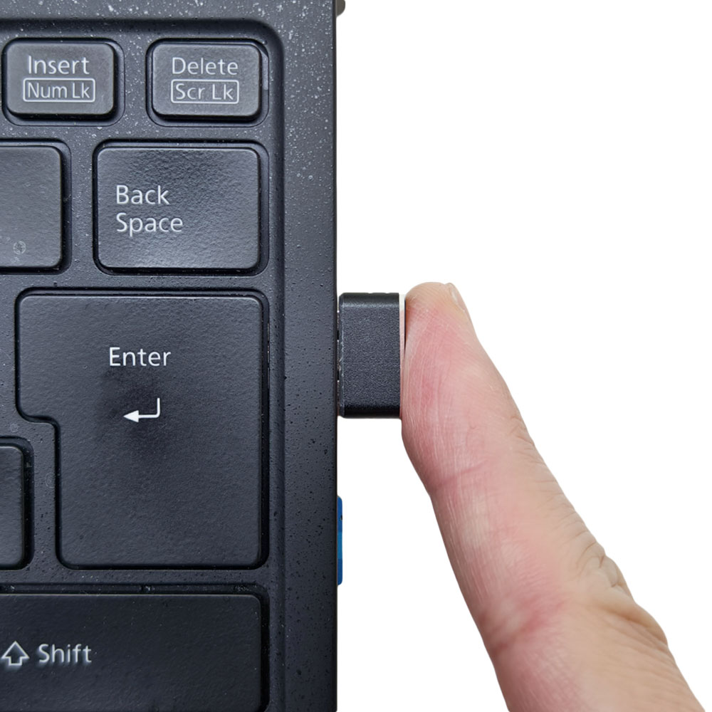 本製品は高精細なセンサーを搭載しながら、設計の見直しにより、パソコンのUSBに刺した状態でも飛び出しがずか。純正のような使い心地を実現しました。