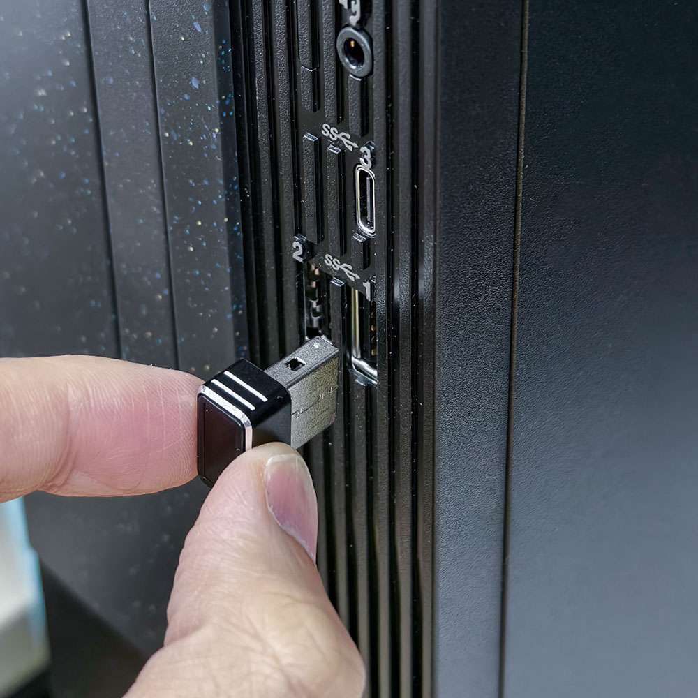 Windowsの標準ドライバで自動認識。専用ソフトのインストール不要で、USBに接続するだけでWindows Helloの指紋認証がすぐに使えます。※初回のみ指紋登録は必要です。